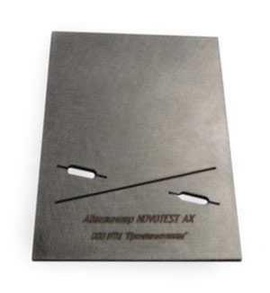 NOVOTEST АХ представляет из себя шаблон изготовленный из стали в нижней части которого расположены нормированные прорези. Надрезы делаются ножом идущим в комплекте, затем очищаются.