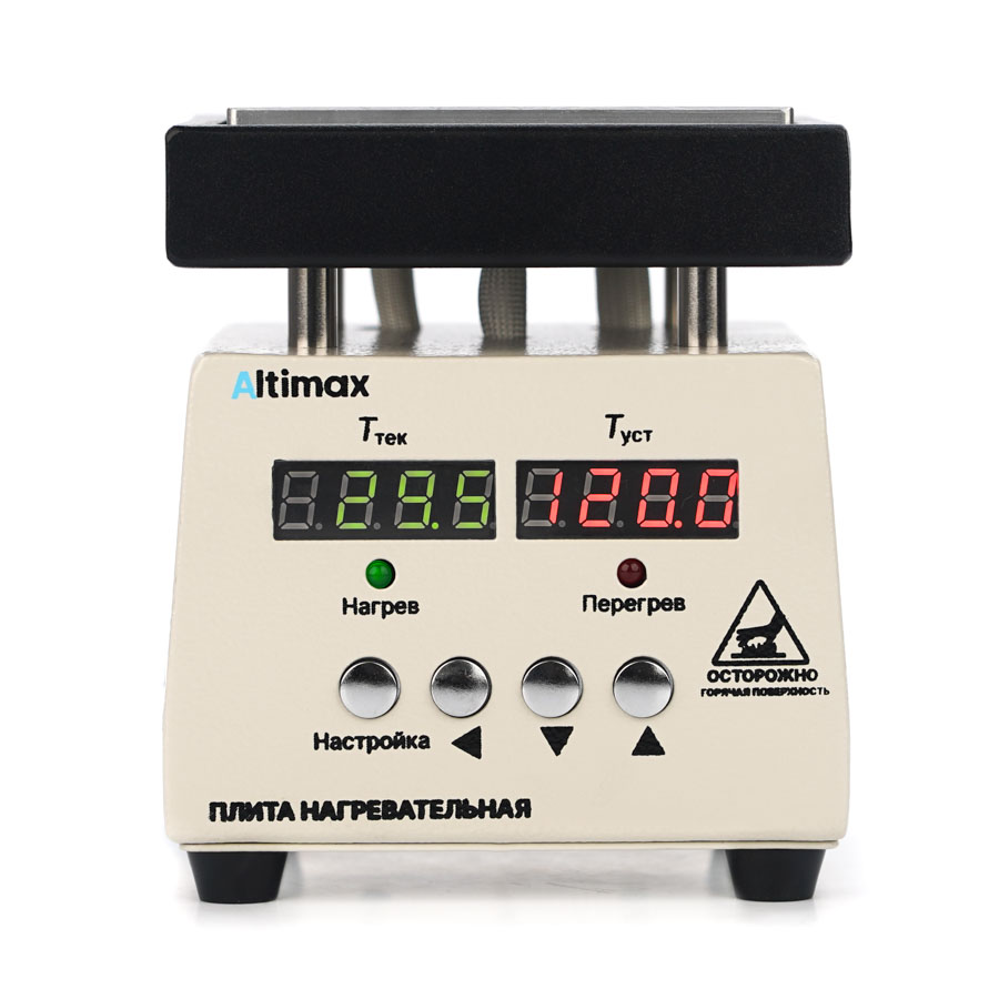 Altimax HP-1-1010 — это универсальная нагревательная плита, предназначенная для равномерного нагрева электронных компонентов, а также колб и другой лабораторной посуды. Прибор подходит для широкого спектра задач, включая ремонт мобильных телефонов, пайку алюминиевых пластин и светодиодных ламп, выпаривания и высушивания растворов, смесей и образцов и др.