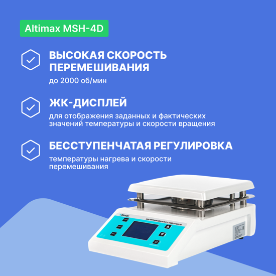 Важной особенностью Altimax MSH-4D является возможность подогрева лабораторных жидкостей до температуры 380 °C.