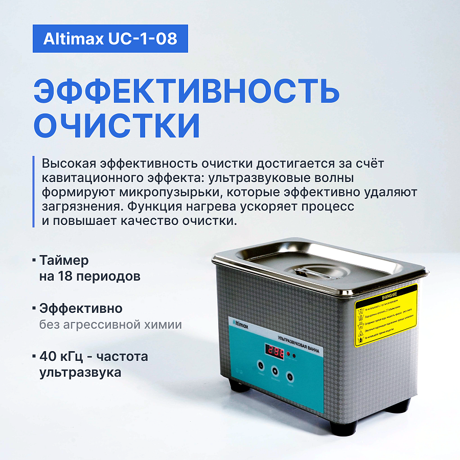 Ультразвуковая ванна Altimax UC-1-08 — это продвинутый ультразвуковой очиститель, обеспечивающий надежный и бережный процесс очистки.