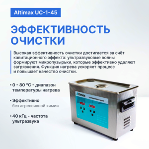 Altimax UCI-1-1750 - это профессиональная ультразвуковая ванна с объемом резервуара 175 литров. Она оснащена внешним генератором и используется для очистки инструментов, деталей и средних размеров механизмов. Эта ультразвуковая ванна активно используется в автомобильных мастерских для отмывки деталей. Altimax UCI-1-1750 также может использоваться для очистки электронных компонентов, таких как печатные платы и микросхемы. Она обеспечивает высокую эффективность очистки и позволяет удалять даже самые стойкие загрязнения.
