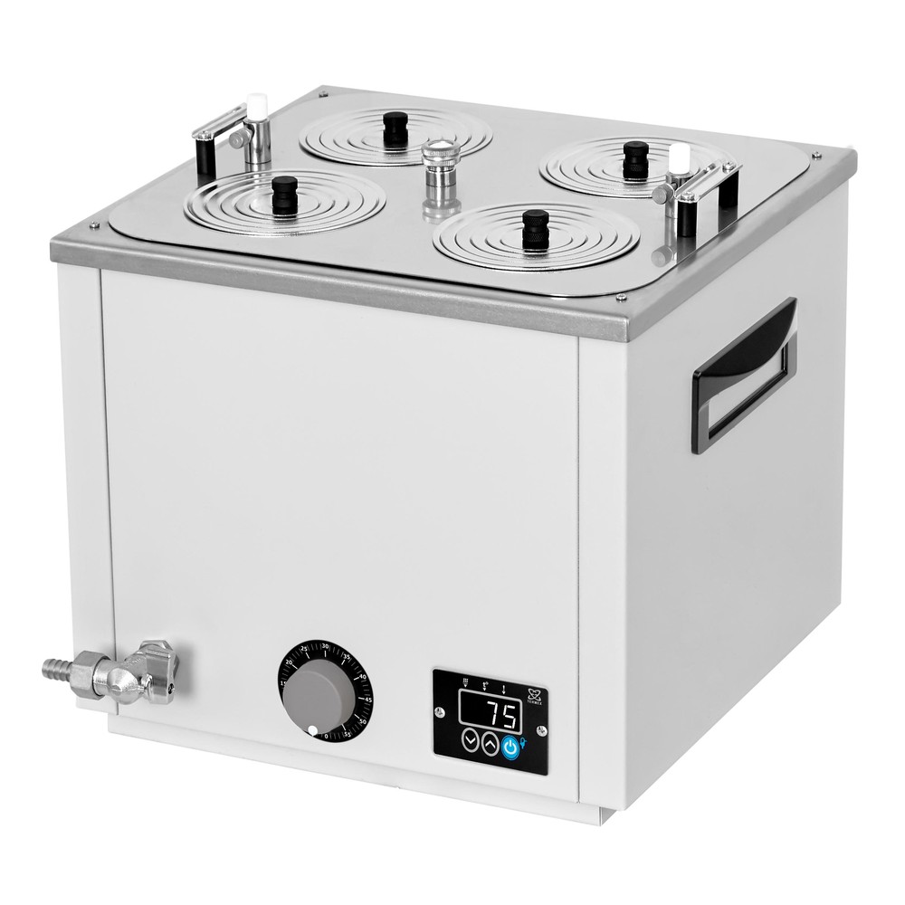 Универсальная баня ЛБ43 оснащена легко извлекаемой корзиной с подвижным дном для размещения лабораторной посуды различного размера и стальными концентрическими кольцами для ее уплотнения.