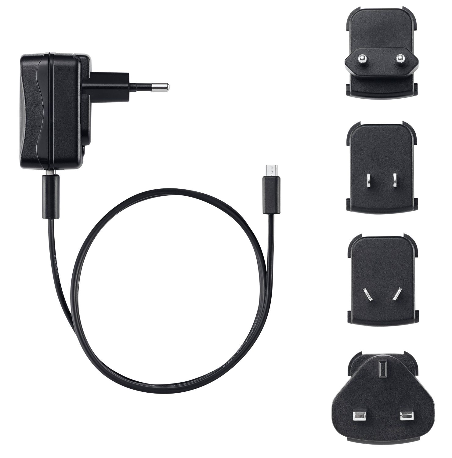 230 V AC / 5 V DC (2 A), micro USB, for the use in USA, CA, AU, Europe, UK, CN, Korea |