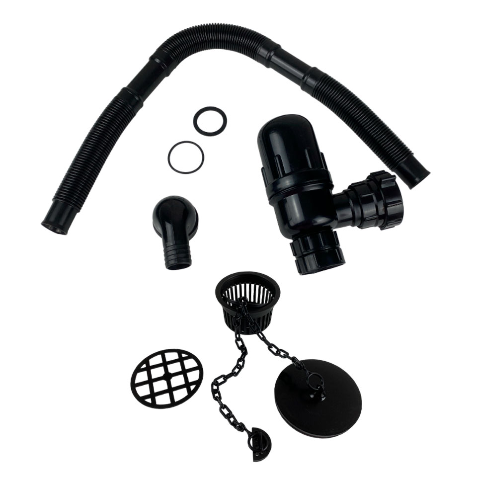 - гофрированная труба, уплотнительное кольцо и сифон;