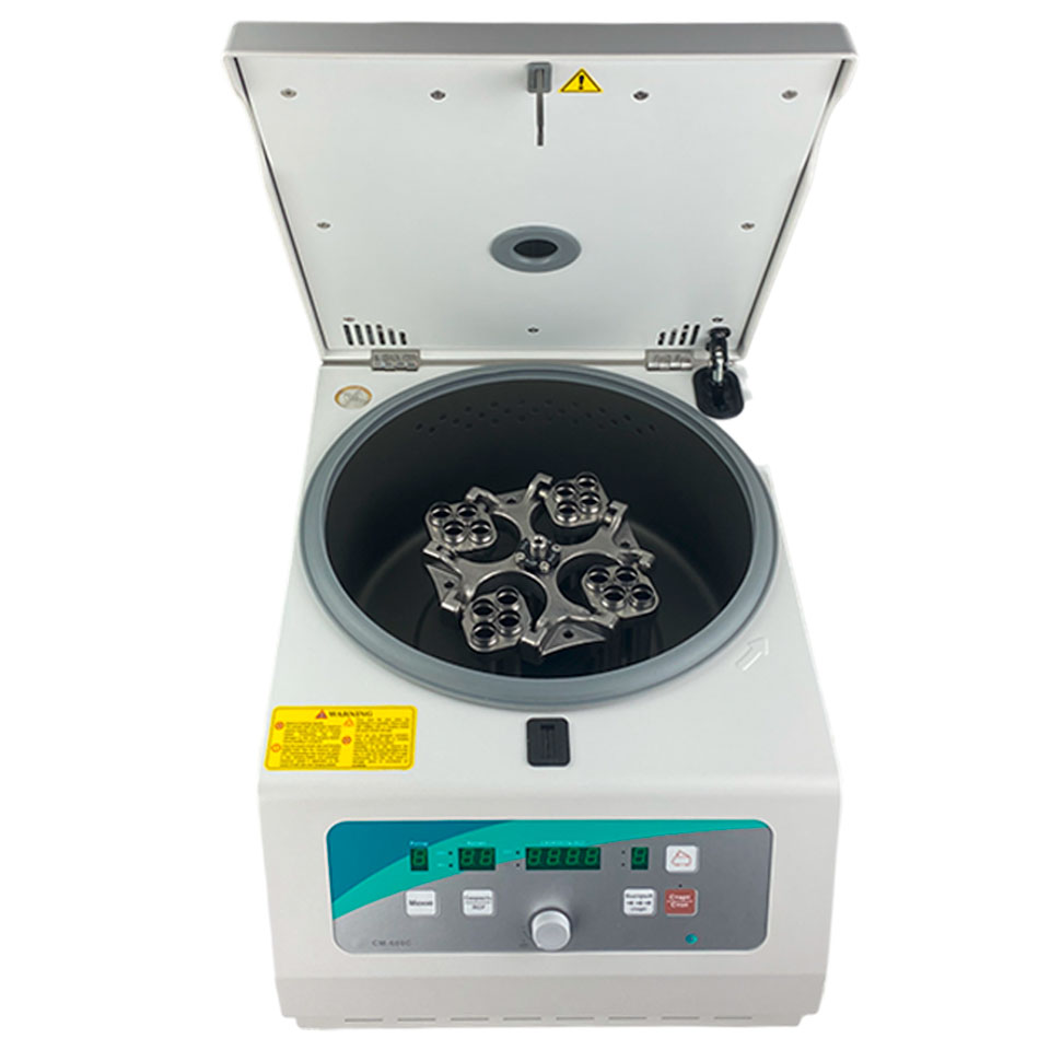 Центрифуга лабораторная CM-600C Stegler может широко использоваться для клинической диагностики, биологии, химии, генной инженерии, иммунологии и других областях и представляет собой стандартный лабораторный прибор для разделения и осаждения жидкостей плотностью не более 1,2 г/см³. В корпусе центрифуги расположен электродвигатель, который приводит в движение один из роторов, установленных на валу электродвигателя. Во время работы центрифужная камера закрыта крышкой с замком, который закрыт до полной остановки центрифуги. Установка параметров центрифугирования осуществляется через панель управления. Для того чтобы уменьшить нагрев образцов во время центрифугирования, который возникает за счет трения адаптеров о воздух, в центрифуги организована воздушная система охлаждения. На боковой и задней стенке корпуса центрифуги, а также внутри центрифужной камеры имеются воздухозаборные решетки, через который воздух поступает и выходит из центрифуги. В случае необходимости аварийного открытия центрифуги на правой стенке корпуса выведен шнур аварийного открытия крышки.
