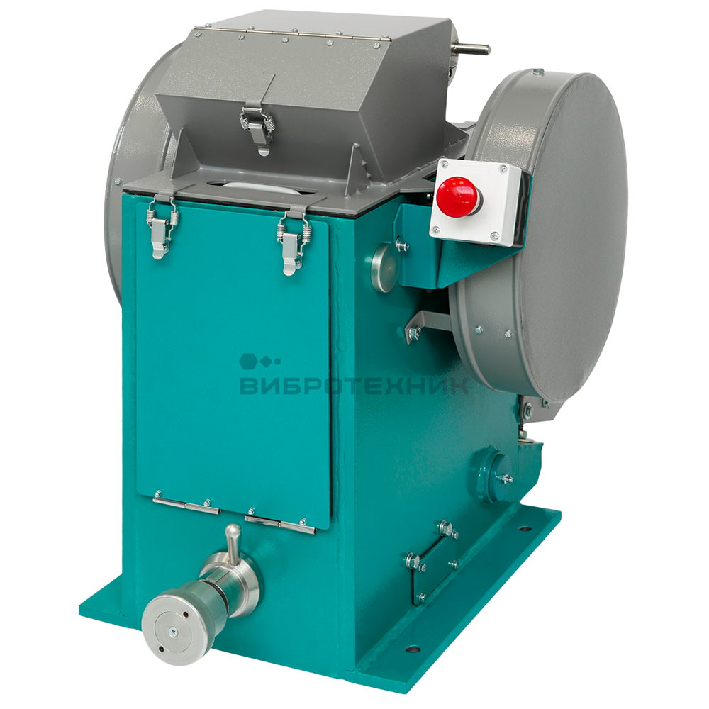 Загрузочный бункер фиксируется на корпусе за счет латчеров. В корпусе предусмотрены окна в передней и задней стенках для очистки дробилки от пыли. Во время работы окна закрываются откидными крышками.