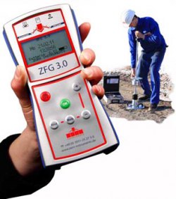ZFG 3.0 — электронный динамический плотномер, в котором реализован метод штампа (метод падающего груза). Предназначен для определения характеристик прочности и деформируемости грунтов и оснований дорог, а так же для проведения исследований с целью их улучшения . Данный метод подходит для крупно-зернистых и смешанных грунтов с максимальным размером фракции 63 мм.