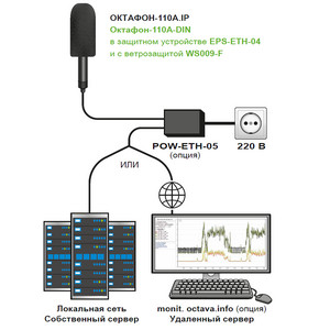 Комплект ОКТАФОН-110А.IP предназначен для создания пунктов контроля шума, обеспечивающих непрерывные измерения уровней звука и звукового давления и передачу измеряемых величин в компьютерную сеть или в Интернет. С комплектом предоставляется пакет программных средств (ОКТ-SDK) для написания собственных приложений.