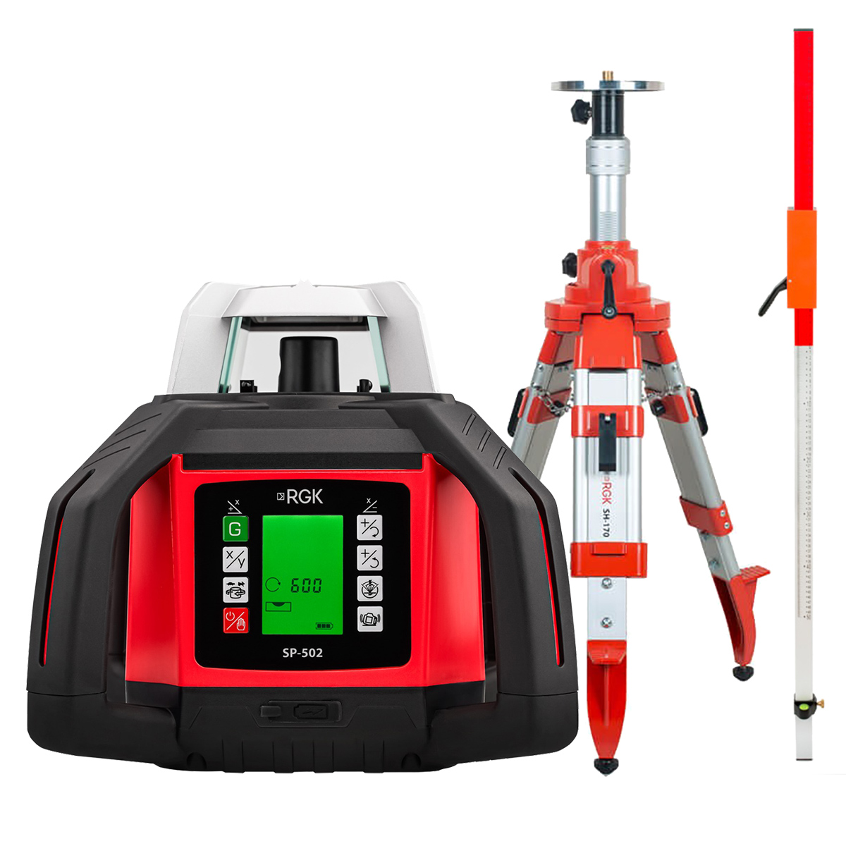 Комплект: ротационный нивелир RGK SP-502 + штатив RGK SH-170, рейка RGK LR-2
