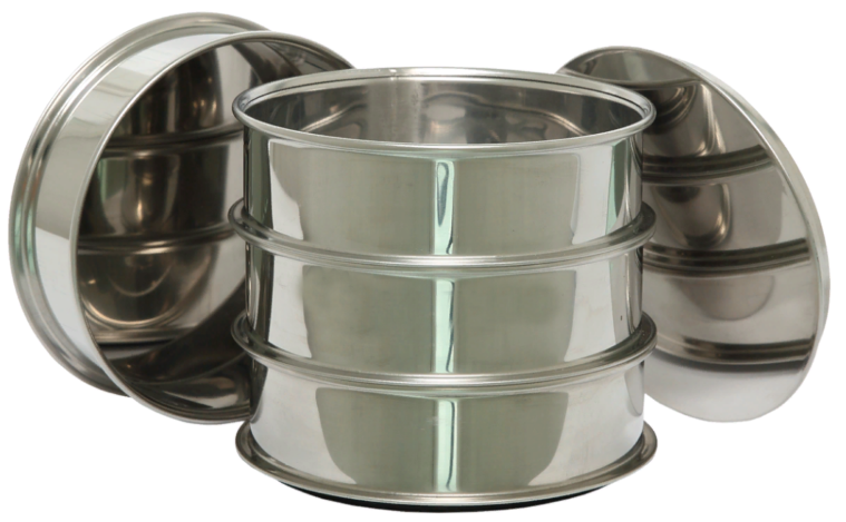 Комплект сит устанавливается в поддон, после чего материал, подлежащий просеиванию, засыпается в верхнее сито, которое закрывается крышкой.