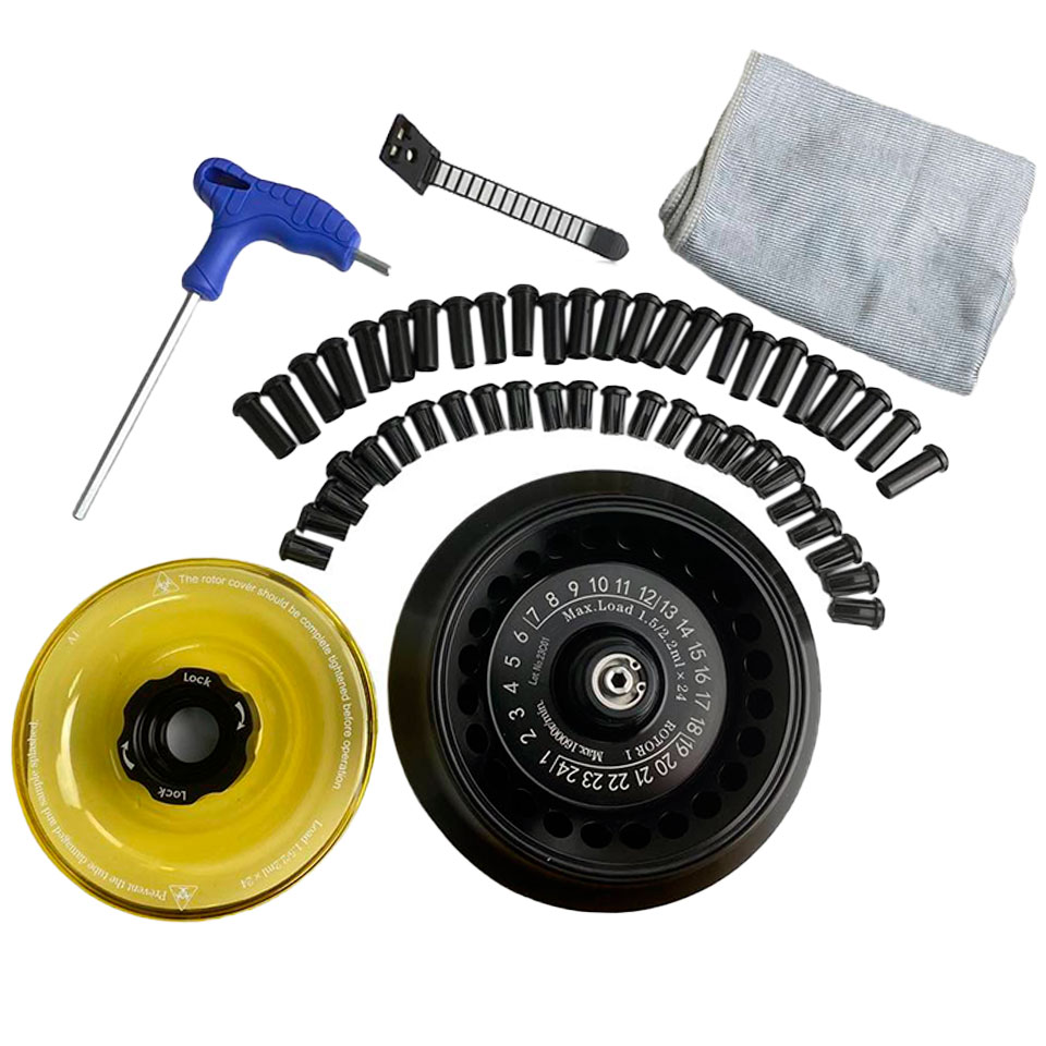STEGLER CM-160 R-Spin оснащена угловым ротором, который рассчитан на 24 пробирки Эппендорфа на 2 или 1,5 мл. В комплект входит 48 адаптеров (по 24 штуки на каждый размер). Сам ротор снимается. Он сделан из металла и прослужит значительно дольше, чем пластиковый.