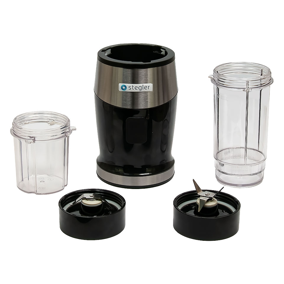 Мельница снабжена двумя сменными стаканами: на 200 и 400 мл и двумя крышками с одинарным и двойным ножом. Одинарный нож предназначен для размола сухих образцов. Двойной крестовидный нож используется для влажных или полужидких образцов.