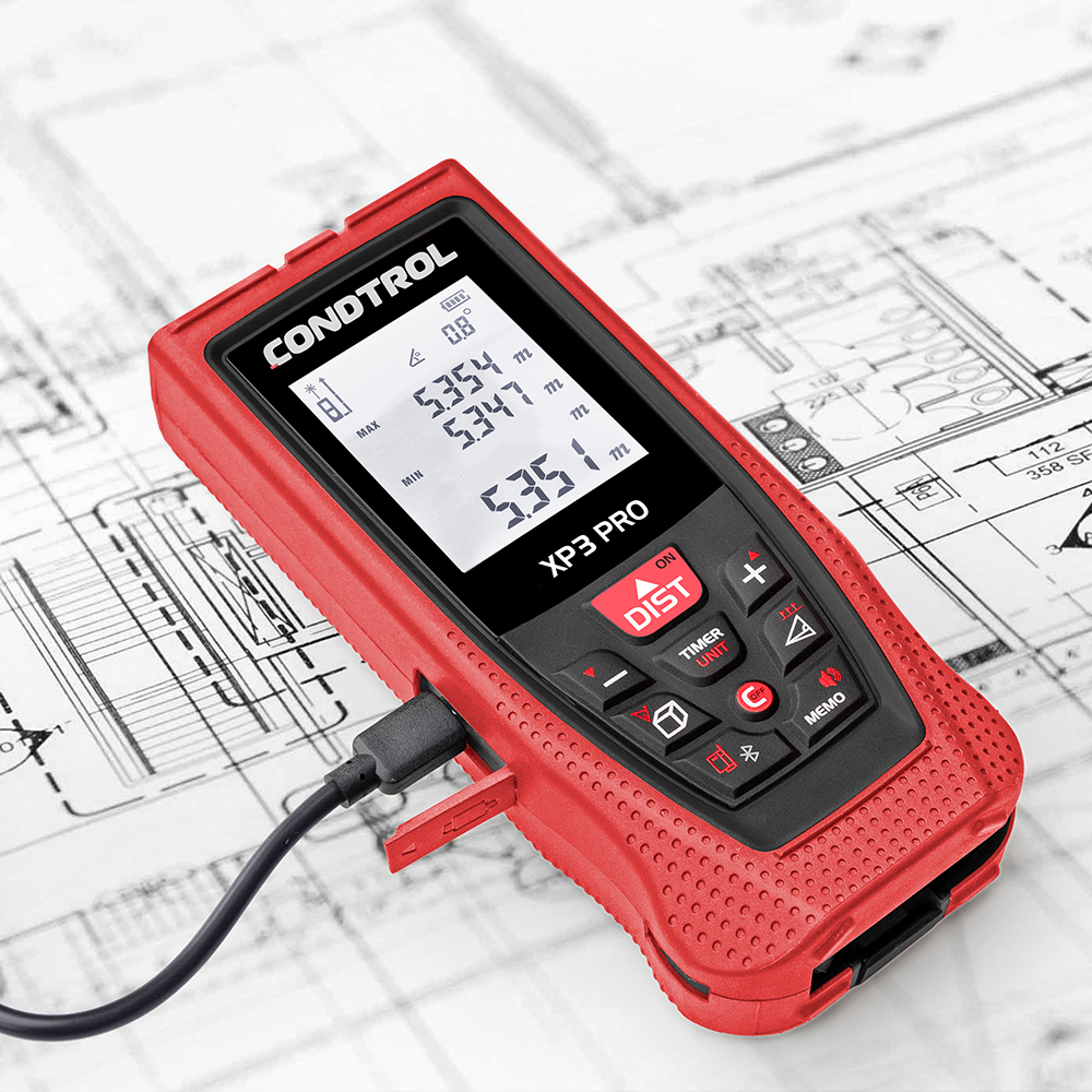 Функция маляра (вычисление площади стен) — В дальномере CONDTROL XP4 это решено нетривиально, достаточно измерить длину, ширину и высоту помещения, на экране прибора появится 3D модель комнаты со всеми параметрами, включая площадь стен, площадь пола, периметр и объем помещения. Таким образом любой маляр сможет рассчитать расход краски, обоев и протяженность плинтуса.