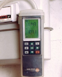 Манометр Testo 312-2, одобренный по стандартам DVGW и соответствующий требованиям TRGI, измеряет давление в диапазоне от 0 до 200 гПа, а также с разрешением 0.01 мбар в диапазоне от 0 до 40 мбар.