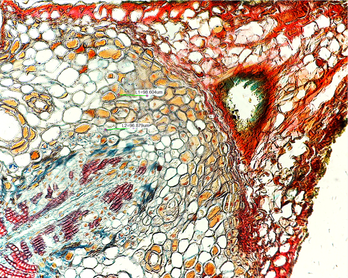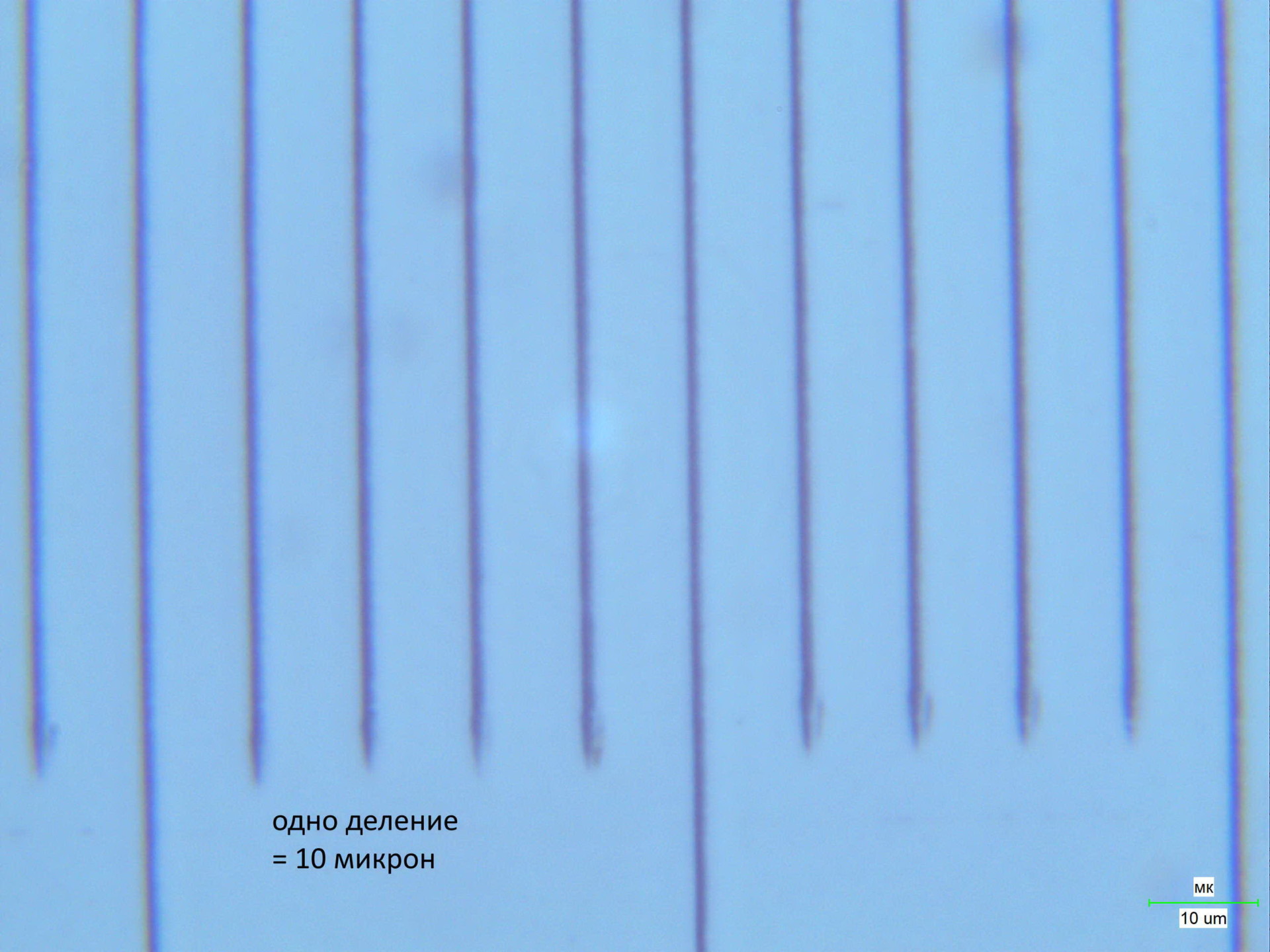 При работе тринокуляра с нашей цифровой камерой и выводе изображения на экран компьютера 21 дюйм на изображении разрешение достигает дифракционного предела, то есть менее 0.3 мкм Программные средства позволяют измерять радиусы, линейные размеры препаратов, площади окружностей и периметры криволинейных объектов. Возможна заводская калибровка вашей системы «микроскоп- камера-дисплей».