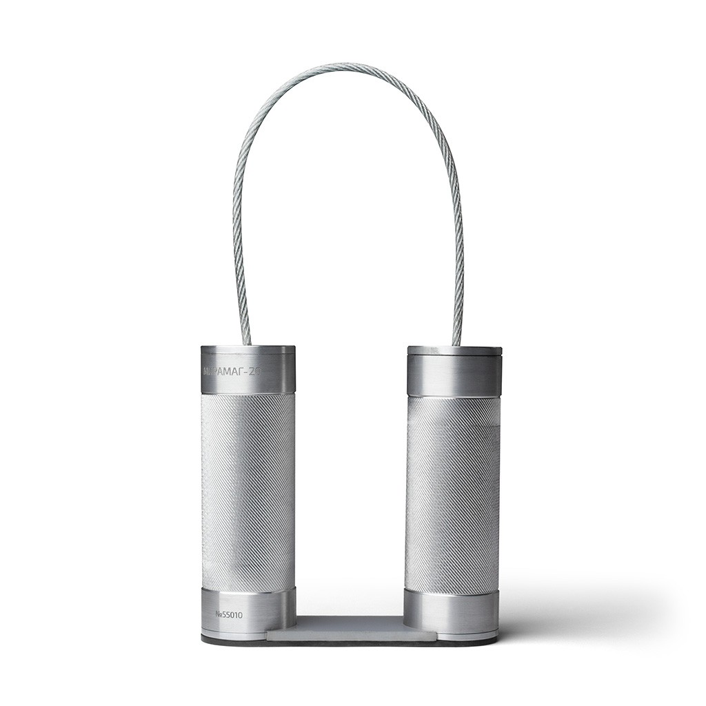 Прибор состоит из двух разнополюсных постоянных магнитов, которые находятся в цилиндрических корпусах, соединенных между собой гибким магнитопроводом (тросом).