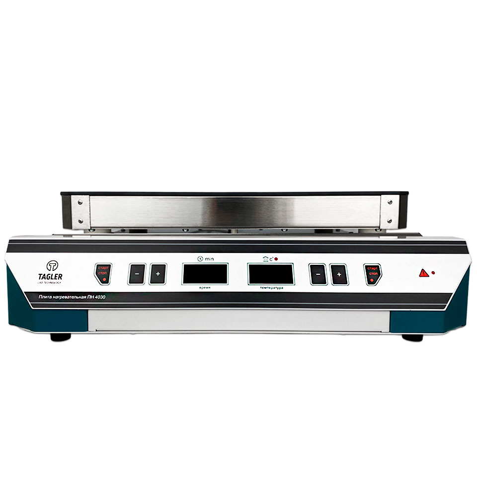 Универсальная лабораторная нагревательная плита TAGLER ПН-4030СК предназначена для эксплуатации в лаборатория для нагрева материалов, ёмкостей, песчаных и масляных бань до температуры 330 °С. Конструкцией предусмотрена возможность длительной работы плиты без отключения (до 10 ч). Рабочая поверхность прибора изготовлена из стеклокерамики.