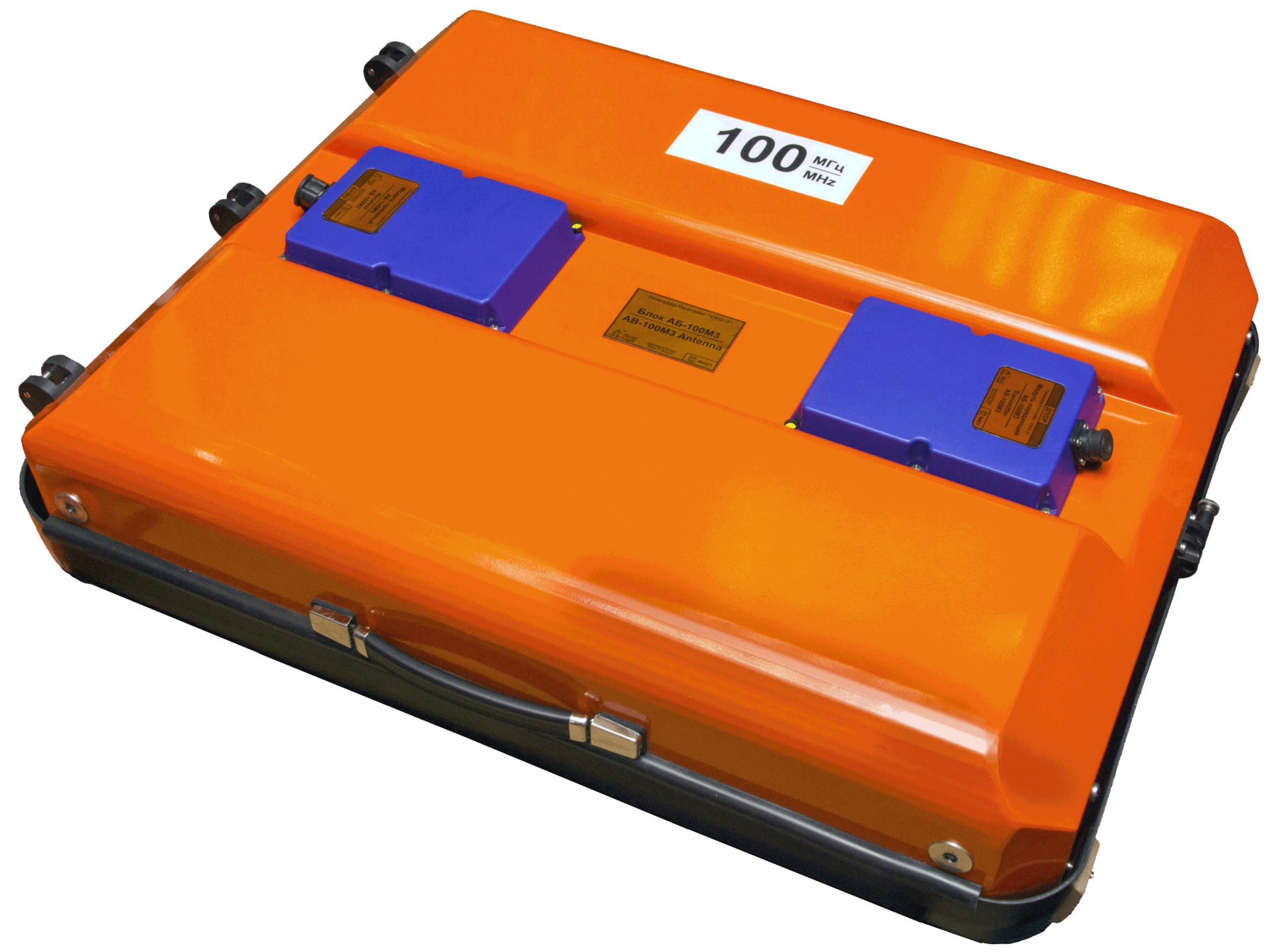 Низкочастотный глубинный комплект с антенным блоком АБ-100М3 позволяет работать на глубинах до 14 метров (в зависимости от типа грунта). Центральная частота — 100 МГц, при этом разрешающая способность от 0,45 м. Предназначен для работы в полевых, неблагоприятных условиях.