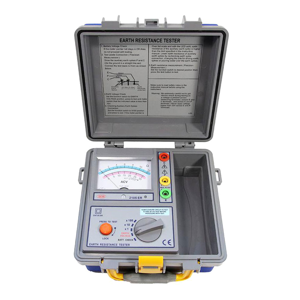 - Тестовый ток 2 мА, что позволяет измерять сопротивление без отключения автоматов защиты в цепи заземления.