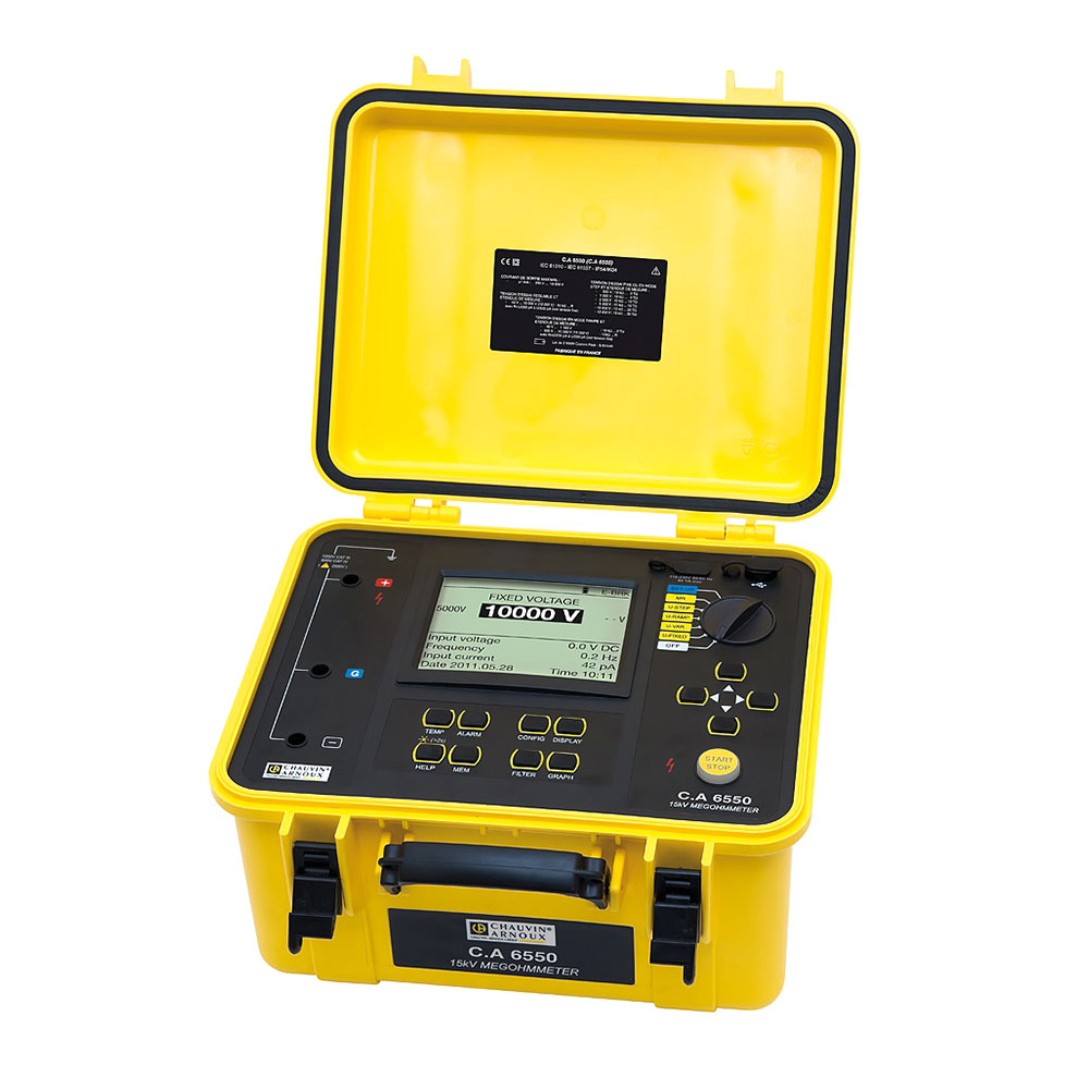 Прибор C.A 6550 один из немногих приборов на сегодняшний день который отображает график изменения параметров изоляции в зависимости от времени приложенного напряжения напрямую, прямо на экране прибора. Благодаря большому объему встроенной памяти полный анализ полученных результатов может быть произведен непосредственно на месте испытания без помощи компьютера непосредственно на приборе, а окончательные данные позже могут быть переданы в компьютер, используя программу DataView.