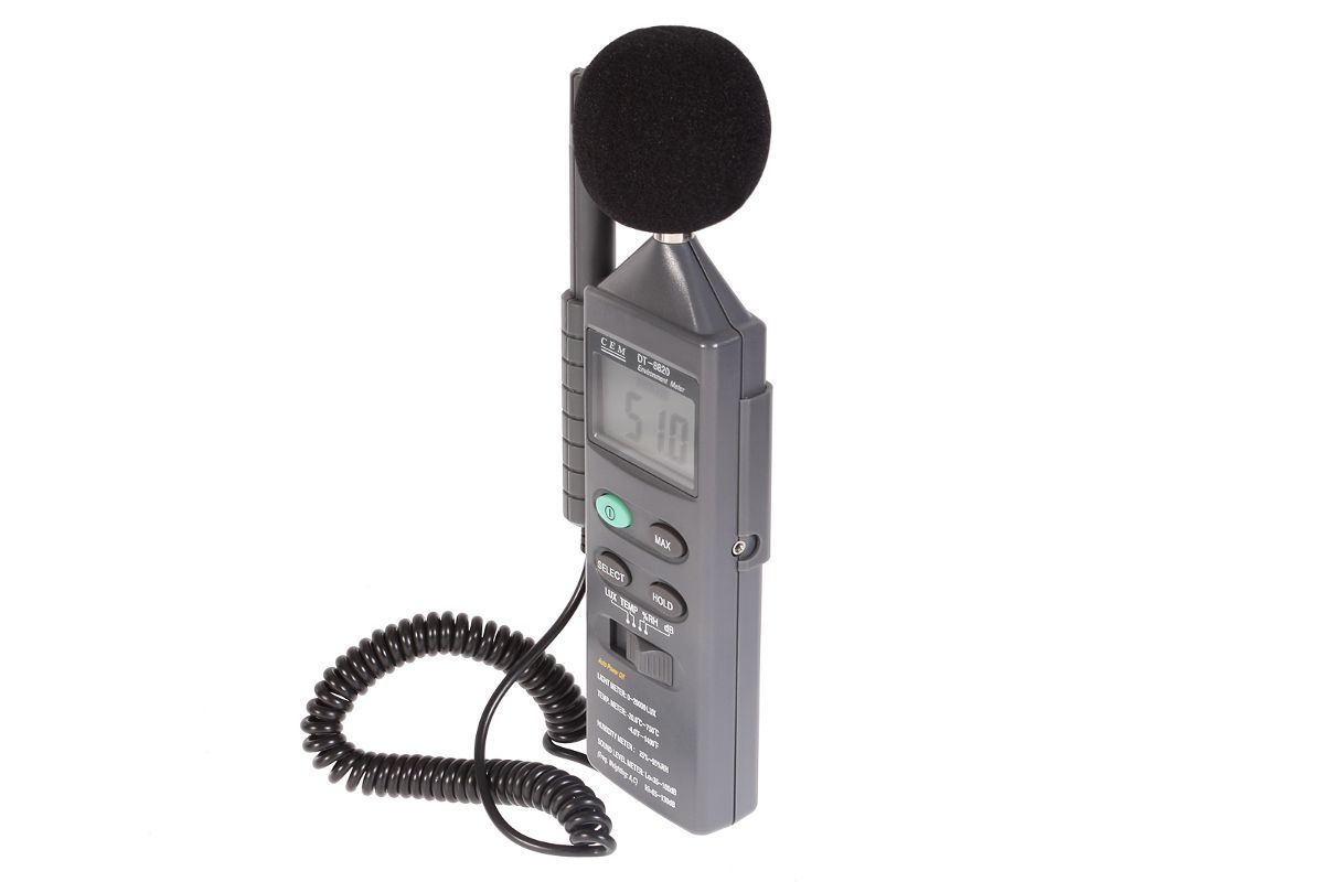 При необходимости контроля температуры газовых или жидких сред, а также поверхности объектов до +750°С, к CEM DT-8820 подключается специальный датчик с термопарой. Уровень освещённости измеряется при помощи выносного фотодиода, а для измерения уровня шума используется конденсаторный микрофон.
