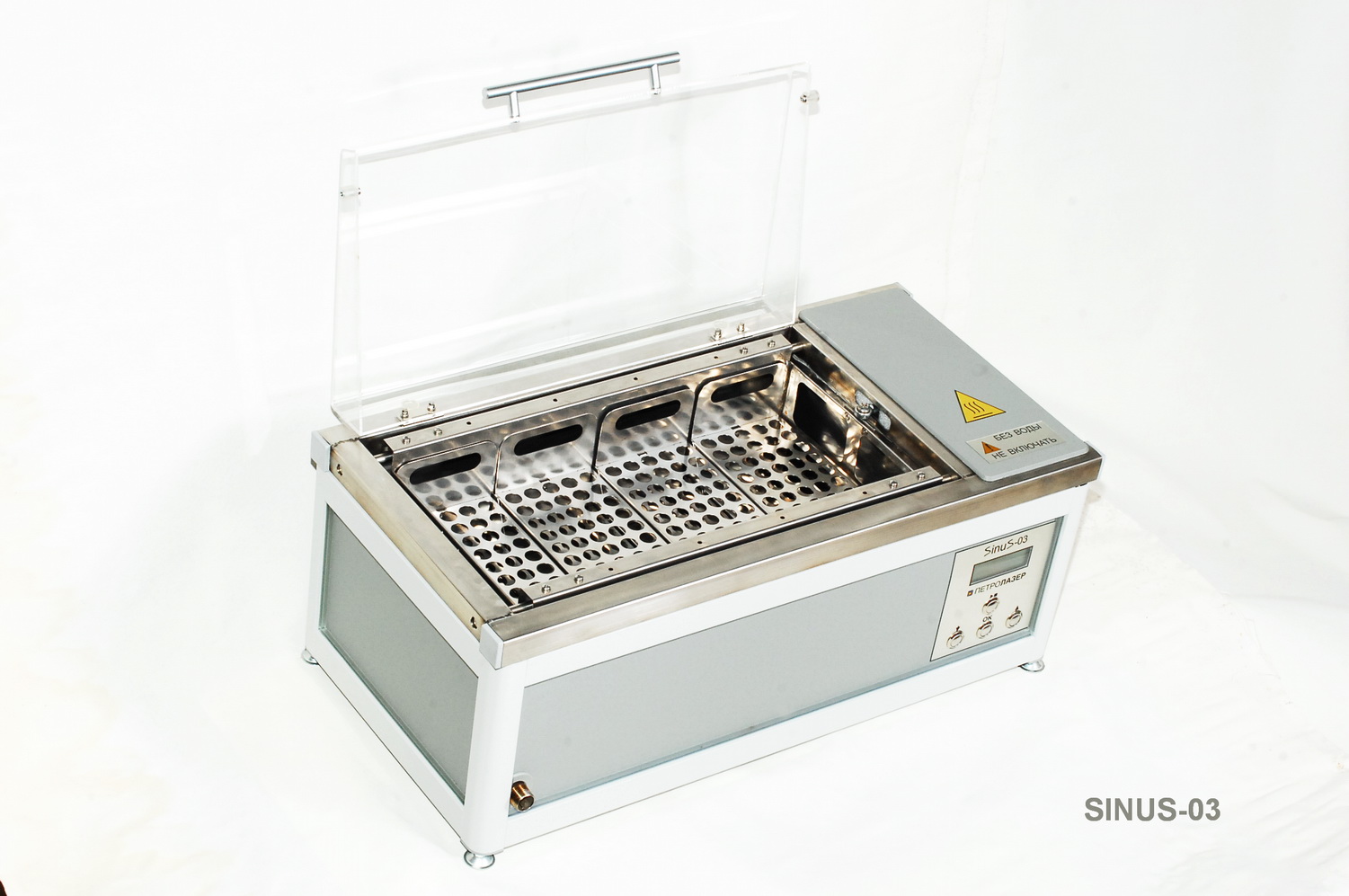 Баня со встряхиванием «СИНУС 03» предназначена для подготовки проб посредством термостатированного нагрева в водяной бане на заданное время и встряхиванием (перемешиванием) с заданной частотой (например — при инкубации, гибридизации и т. д.).