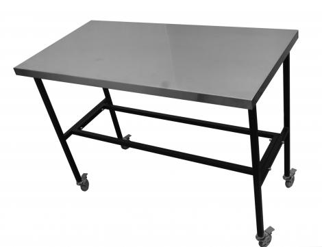 - Каркас стола выполнен из металла, покрытого порошковой краской, а столешница — из нержавеющей стали. Конструкция прочная и функциональная.