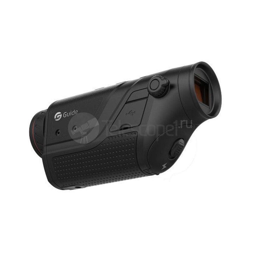 Guide TD420 — прочный водо- и пыленепроницаемый тепловизор для походов и путешествий: весит мало (350 грамм), удобно умещается ладони или в кармане, не боится непогоды, снега и дождя, работает зимой и летом при температуре -10/+50 °C, выдержит даже падение в траву или сугроб с высоты в 1 метр. Супертихие выпуклые кнопки различаются не только рисунком, но и высотой, благодаря чему их можно быстро и безошибочно находить в темноте на ощупь, а управлять прибором будет удобно как правше, так и левше. Штатный наглазник можно заменить на наглазник со скошенным краем — для улучшенной защиты от боковой засветки. А установка на штатив освободит руки, стабилизирует картинку и сделает более комфортными длительные наблюдения и видеосъёмку на телефон.