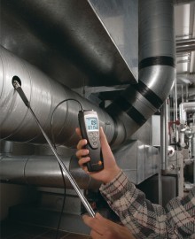 Анемометр Testo 416 используется с целью оценки объема отработанного воздуха. Благодаря небольшому размеру прибор может использоваться в системах вытяжной вентиляции с целью определения его работоспособности. Для удобства использования устройство снабжено телескопической рукояткой, максимальная длина которой 890мм.