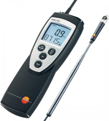 Термоанемометр Testo 425 – это прибор, с помощью которого можно измерять скорость и температуру. Анемометр Тесто отображает объемный расход на экране. Прибор оснащен телескопическим зондом скорости, который имеет обогреваемую струну, позволяющую измерять параметры на воздуховоде, диаметр которого до 170 см. Благодаря высокоточному сенсору можно измерять даже сверхнизкие скорости (от 0,03 метров за секунду).