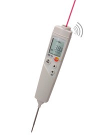 Быстродействующий и высокоточный инфракрасный термометр, созданный специально для измерений в пищевом секторе, идеально сочетает в себе бесконтактный и проникающий методы измерения температуры продукта. Прибор позволяет контролировать качество пищевых продуктов путем быстрого сканирования поверхностной температуры без необходимости в нарушении целостности упаковки. В случае сомнений проведите дополнительное измерение внутренней температуры продукта. Измерительные приборы Testo — легкий и надежный способ соответствия требованиям HACCP.