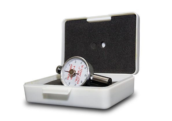 ТВР-А твердомер (дюрометр) Шора тип А с аналоговым индикатором предназначен для измерения твёрдости по шкале Шора тип А резины в соответствии с ГОСТ 263-75 и мягких пластмасс в соответствии с ГОСТ 24621-2015 (ISO 868-2003), в т.ч. мягких полиуретанов: эластомера, ПВХ, силикона, продуктов из натурального каучука, неопрена, смолы, полиэстера, кожи, полиграфических валков и т.п.