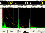 - Автоматическое определение уровня сигнала и координат дефекта при работе с АСД (два временных строба)