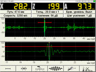 Отображение сигнала и его характеристик в верхней части экрана в режиме НАСТРОЙКА, позволяет оперативно подстраивать параметры контроля.