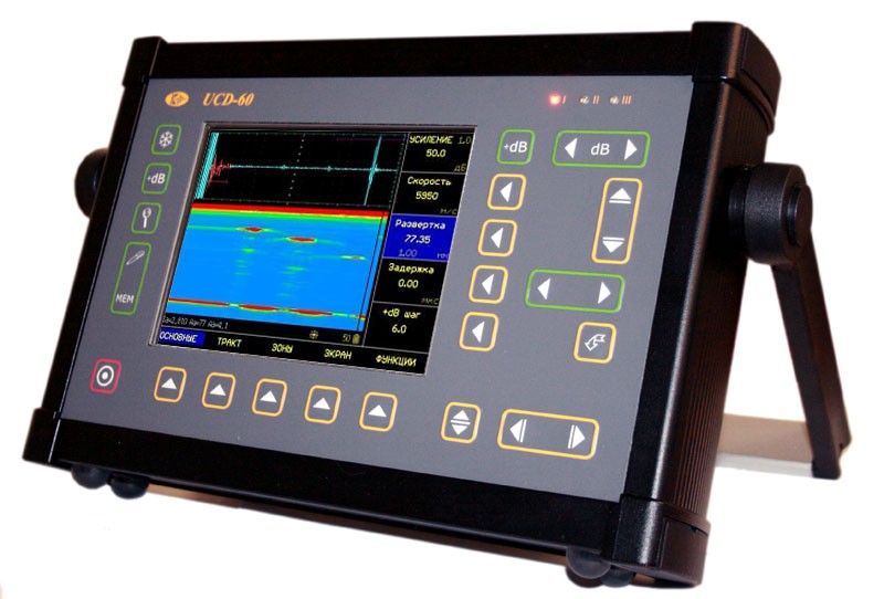 Универсальный ультразвуковой дефектоскоп УСД-60 с полноцветным TFT дисплеем 135 х 100 мм отображает сигналы в виде А, B, C -сканов, имеется возможность записи и хранения большого объем данных, автоформирование отчетов и генерация протоколов с возможностью вывода их на печать непосредственно с дефектоскопа. Дефектоскоп УСД-60 применяется так же для замера толщины изделий с высокой точностью и коррекцией V-образности поверхности объекта, способен проводить ручную, автоматизированную контактную и иммерсионную (специальная и-зона) диагностику. К дефектоскопу УСД-60 подключаются многоканальные скан-системы (до 32-х каналов). Ультразвуковой дефектоскоп УСД-60 сертифицирован и внесен в реестр СИ (№34808-07). Гарантия на дефектоскоп составляет 36 месяцев (3 года).
