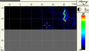 - Визуализация внутренней структуры объекта контроля в виде наглядного и достоверного изображения сечения (В-томограмма) в режиме реального времени с удобными шкалами расстояния и глубины, что существенно упрощает и делает более доступной интерпретацию полученной информации.
