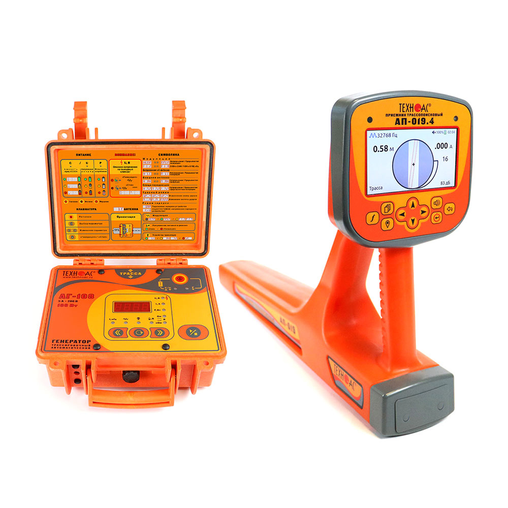 Комплект оснащен новейшим компактным автономным генератором АГ-108 со встроенными элементами питания, дисплеем и встроенной индукционной антенной, для трассировки коммуникации бесконтактным способом.