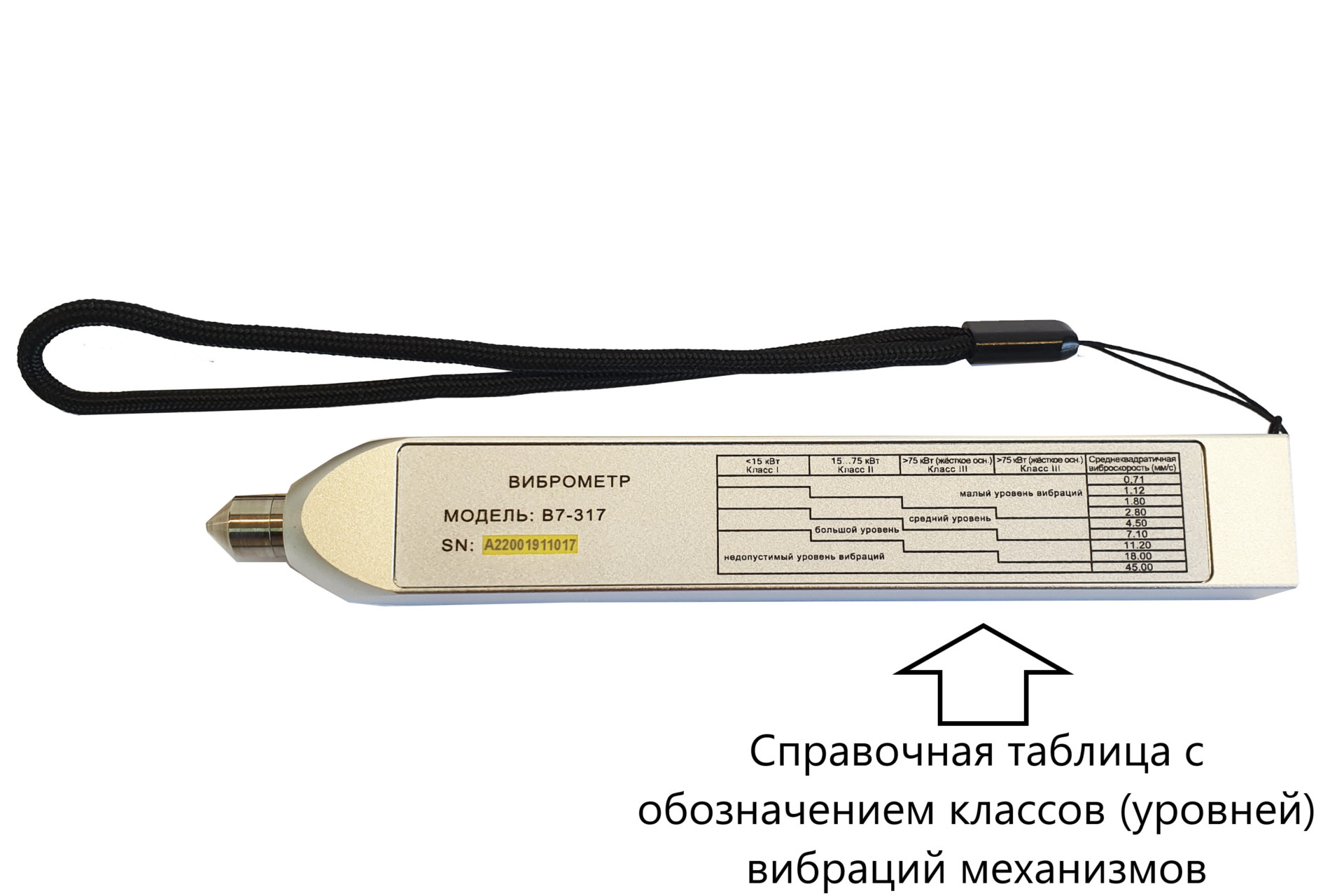 - Справочная таблица с обозначением классов (уровней) вибраций механизмов на тыльной стороне прибора;