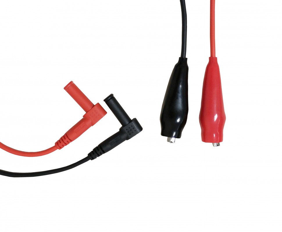 Комплект состоит из красного и черного проводов, с изоляцией из ПВХ, с одной стороны зажимы типа «Крокодил» (захват до 8 мм), с другой — угловые укрытые в корпус однополюсные штепсели (типа «банан») с заглушками.