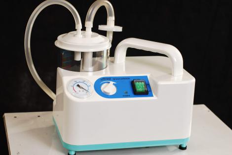 Медицинский ветеринарный вакуумный отсасыватель обеспечивает высокое отрицательное давление, позволяя сравнивать его с другими стационарными аспираторами. Отсасыватель имеет производительный двух- цилиндровый насос и дает возможность точно регулировать мощность, надежен, безопасен в работе, снабжен защитой от переполнения банки сборника отходов, прост для дезинфекции и очистки после использования. На выходе воздуха из емкости стоит мембранный антибактериальный фильтр, для предотвращения контаминации. В крышку емкости встроен поплавковый клапан, перекрывающий поток и страхующий от переполнения емкости для сбора отходов.