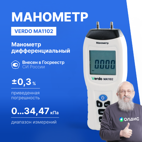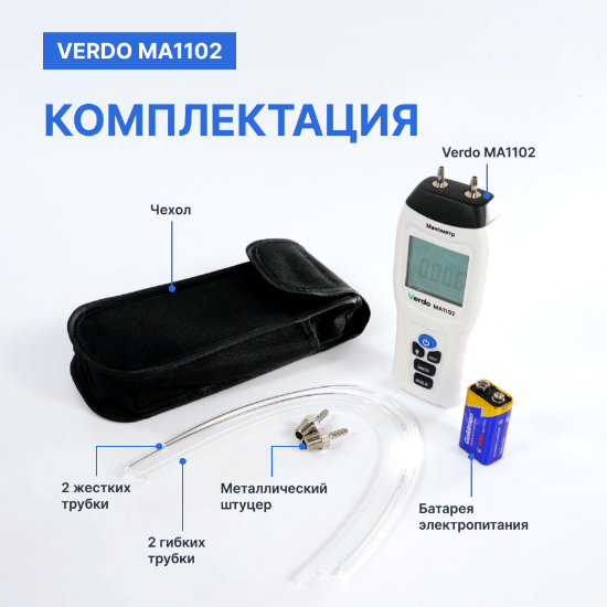 Verdo МА1102 представляет собой компактный и лёгкий дифференциальный манометр, предназначенный для точного измерения разницы давлений между двумя точками в воздушных и газовых системах.