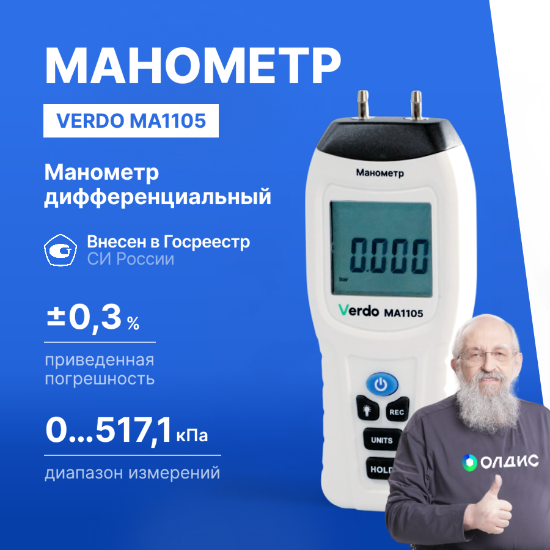Verdo MA1105 представляет собой компактный и лёгкий дифференциальный манометр, предназначенный для точного измерения разницы давлений между двумя точками в воздушных и газовых системах.
