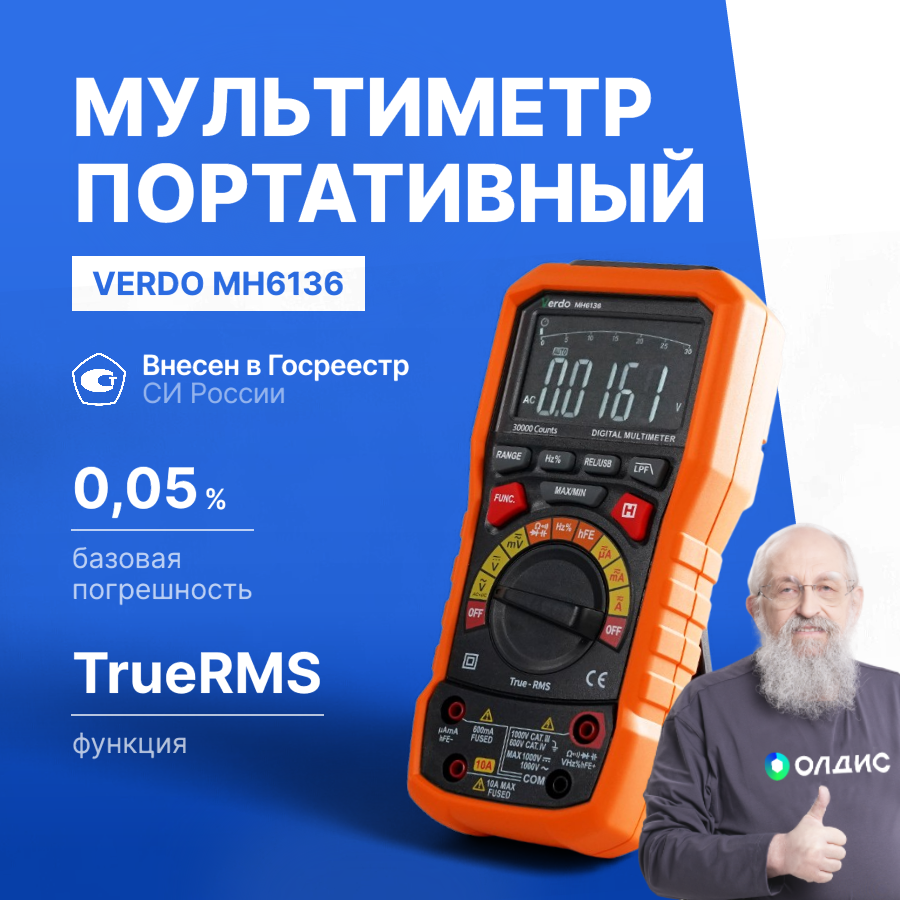 Мультиметр VERDO MH6135 – это многофункциональный ручной цифровой мультиметр с функцией отображения истинного среднеквадратичного значения (TrueRMS), большим многострочным жидкокристаллическим дисплеем с аналоговой шкалой, что облегчает считывание показаний. Передача измеренных значений величин в ПО обработки. Этот многофункциональный измерительный прибор идеально подходит как для профессионального использования на производстве, ремонта и сервисного обслуживания, так и для обучения и бытового применения.