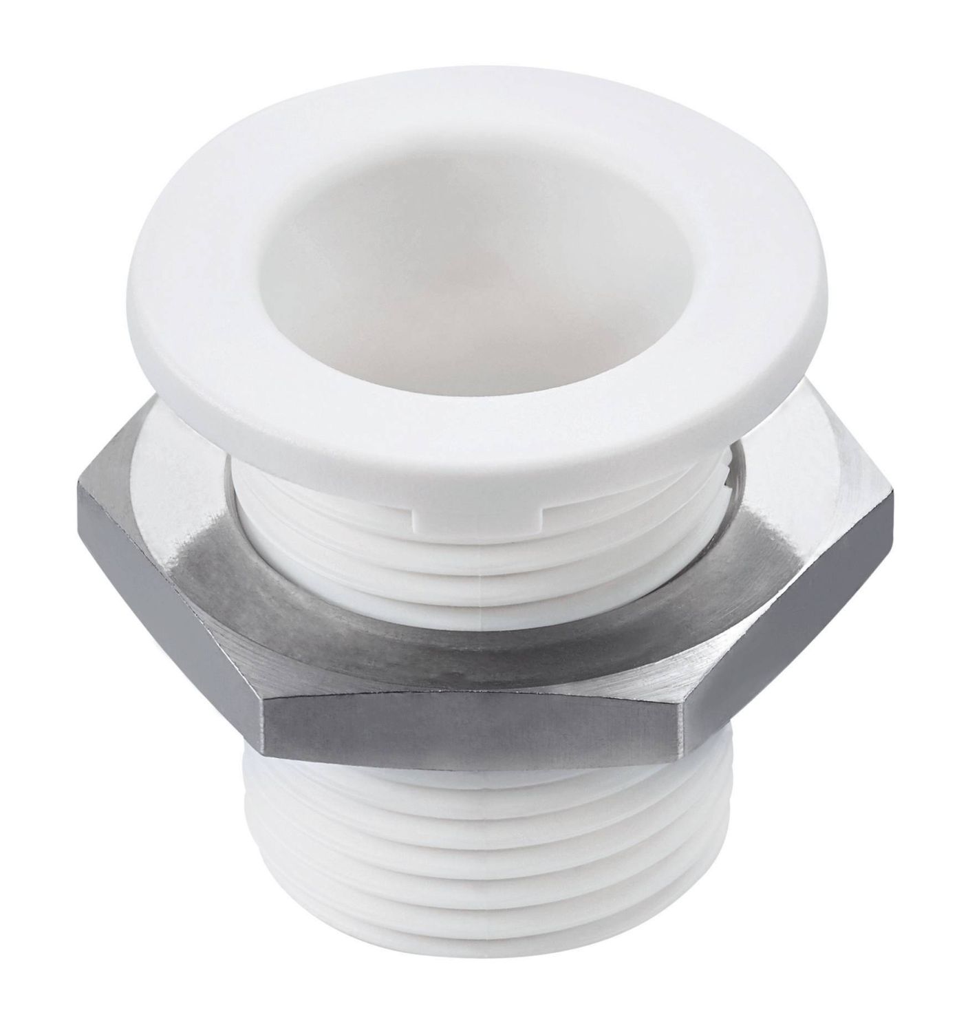 Втулка для крепления внешних зондов температуры/влажности идеальна для измерений в выставочных витринах. Установите втулку в отверстие в стенке шкафа. Диаметр отверстия должен быть 20 мм. Вставьте во втулку зонд температуры, влажности, логгер данных разместите в основании шкафа, подсоедините зонд. Микроклимат внутри шкафа не будет нарушен, благодаря уплотнительному кольцу втулки.